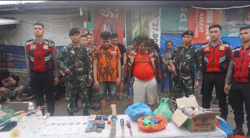 MEDAN (Waspada): Tim gabungan TNI-Polri dari Kodam I/BB, Deninteldam I/BB dan Reskrim Polda Sumut, menggerebek barak narkoba di Jl. Jermal XV, Gang Dojo dan Gang Kasih, Rabu (19/3).