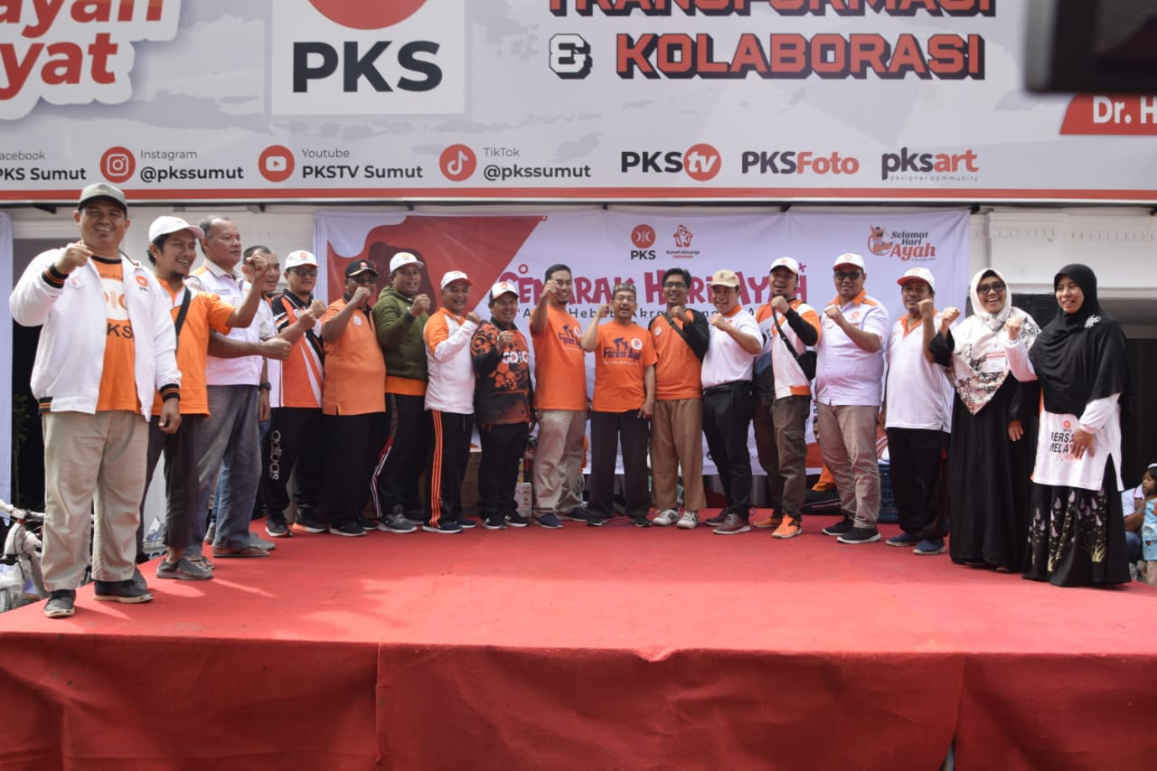 MEDAN (Waspada): Momentum peringatan Hari Ayah Partai Keadilan Sejahtera (PKS) Sumatera Utara, melaksanakan berbagai kegiatan semarak hari ayah, mulai dari games bersama ayah dan anak, senam bersama, jalan santai, pembagian hadiah doorprize dan pelantikan forum ayah DPC se-Kota Medan, di Halaman Rumah Pemenangan PKS Sumut Jl.Mongonsidi Kota Medan, Minggu (20/11).