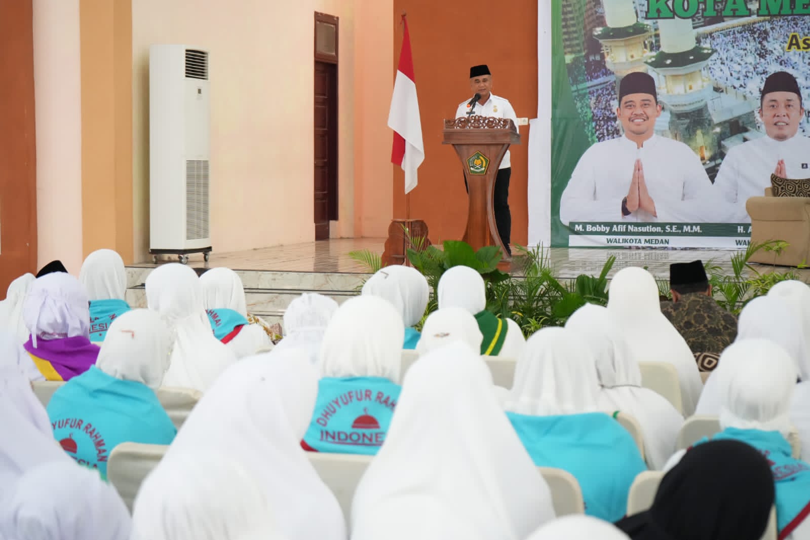 “Bimbingan Manasik Haji ini merupakan salah satu upaya dasar dalam rangka pembelajaran melaksanakan secara benar seluruh rukun islam yang ke 5. Kegiatan ini akan memberikan dampak psikologis yang positif terhadap pelaksanaan haji bagi para Duyufurrahman sekalian, karena itu Bapak Wali Kota Medan berpesan agar seluruh calon jamaah haji dapat dengan serius dan sungguh-sungguh mengikuti setiap materi dalam manasik haji ini.”kata M. Sofyan saat membacakan sambutan Wali Kota Medan Bobby Nasution.