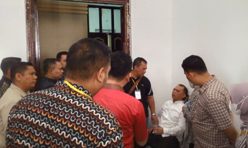 Mengetahui itu, As’ad Rahim selaku Ketua majelis hakim memerintakan untuk dibawa ke Rumah Sakit Malahayati dan kemudian hakim menskors persidangan.