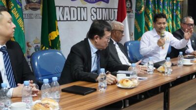 Ketua Kadin Sumut Firsal Ferial Mutyara yang baru pulang dari lawatan kenegaraan bersama Presiden Jokowi ke Australia, langsung menyambut kedatangan para investor tersebut di kantor Kadin Sumut.