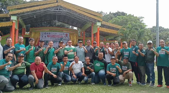Anas Urbaningrum, Ahmad Doli Kurnia dan Ketua Umum KAHMI Sumut Rusdi Lubis diabadikan bersama pengurus Majelis Daerah KAHMI se-Sumut dan peserta jalan sehat