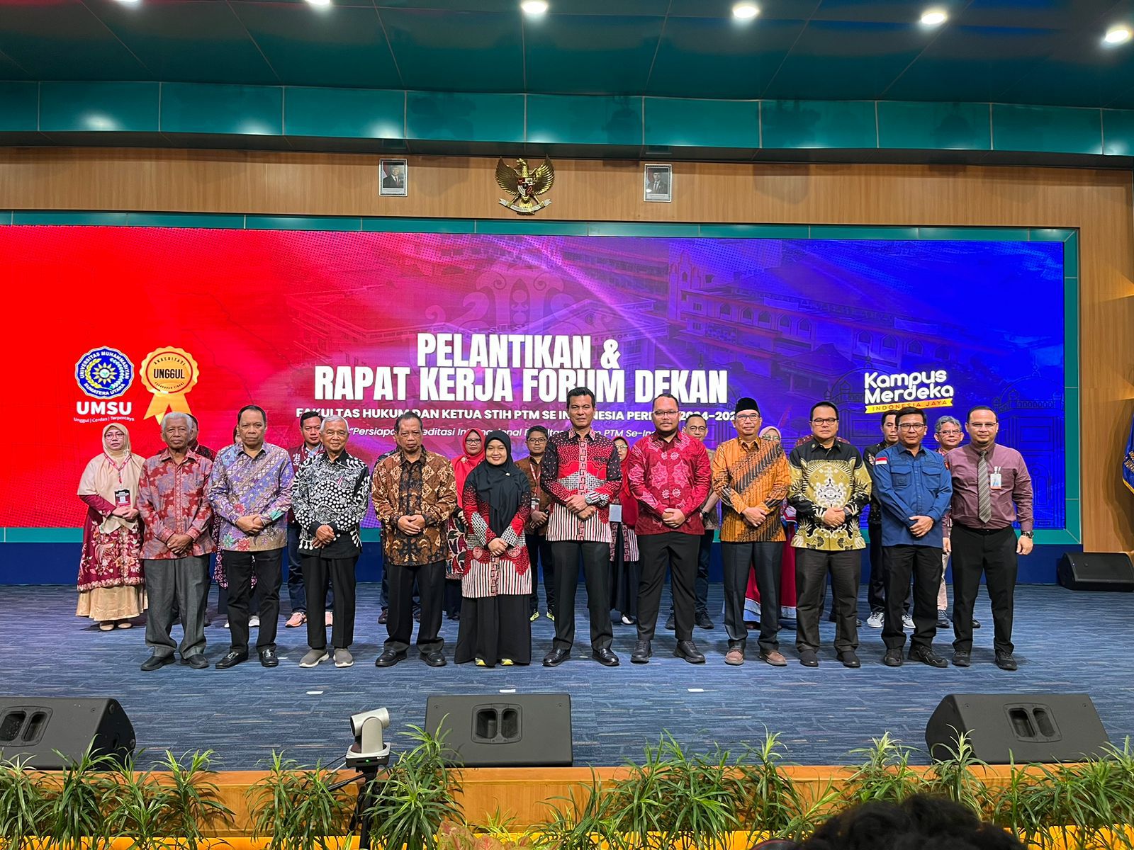 Pelantikan pengurus Fordek FH & Ketua STIH PTM se Indonesia masa bakti 2024-2026 digelar di Auditorium UMSU (19/12/24). Fordek FH & Ketua STIH PTM yang dinakhodai Dr. Faisal SH MHum (Dekan FH UMSU) bersama Sekretaris Umum Satria Unggul Wicaksana Prakasa, S.H., M.H. (UM Surabaya), Bendahara Dwi Nur Fauziah, S.H., M.H. (UM Tangerang) dan jajaran pengurus lain dilantik oleh Wakil Ketua III Majelis Diktilitbang PP Muhammadiyah, Prof Dr Khudzaifah Dimyati SH MHum.