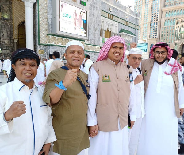 Dan foto jemaah KBIH Pemprovsu bertemu dengan Su’ud, Warga Negara Arab Saudi berdarah Indonesia, karena ibunya asli Kalimantan, alumni Umul Quro Makkah. Su’ud bertugas menjaga jamaah yang bertawaf di Ka’bah.