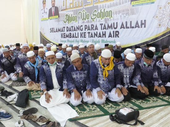 “Hari ini merupakan hari bersejarah bagi bapak dan ibu setelah kurang lebih 40 hari melaksanakan rangkaian ibadah haji ditanah suci, diantaranya melaskanakan ibadah di Madinah dan Masjid Nabawi, ziarah ke makam Rasulullah hingga melaksanakan puncak ibadah haji di Arafah, Muzdalifah dan Mina,” ungkapnya.