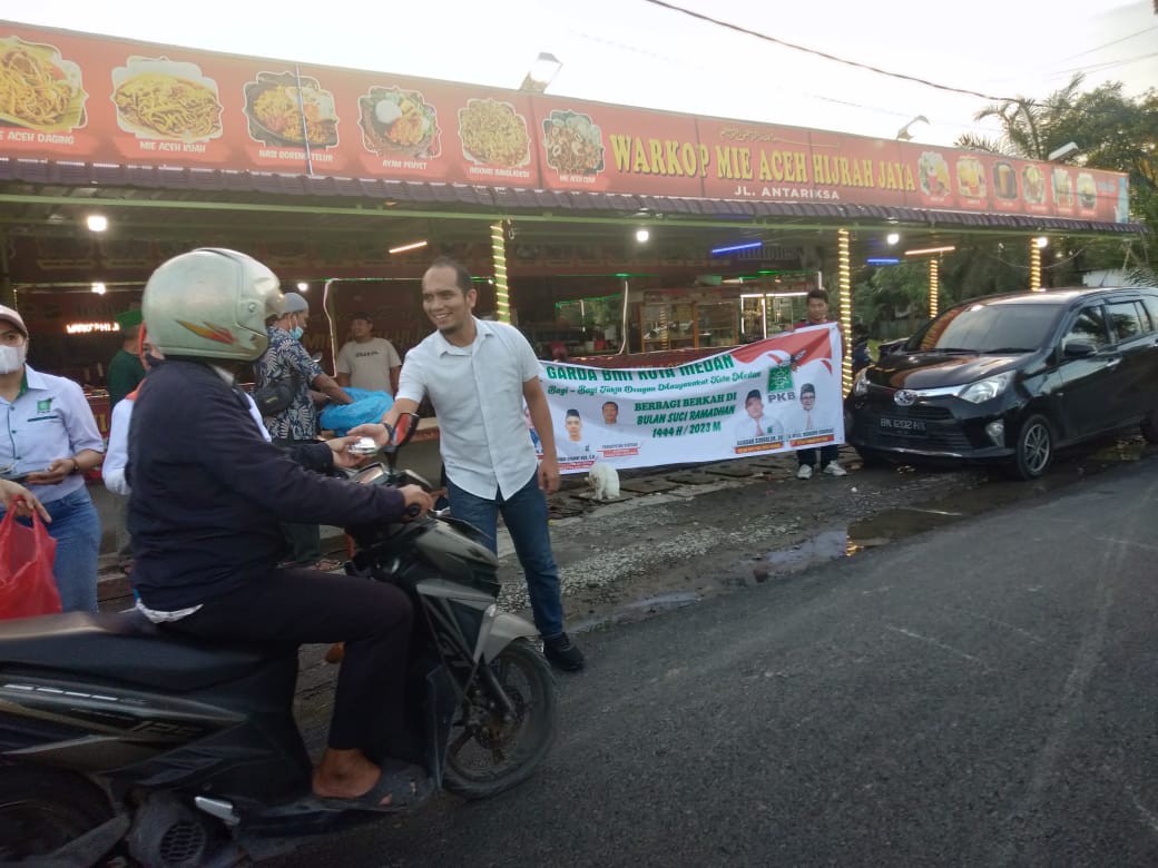 Pembagian takjil ini, lanjutnya diikuti seluruh pengurus Garda BMI Kota Medan lanjut Eriyadi, bergabung dengan PAC Kelurahan Sari Rejo.
