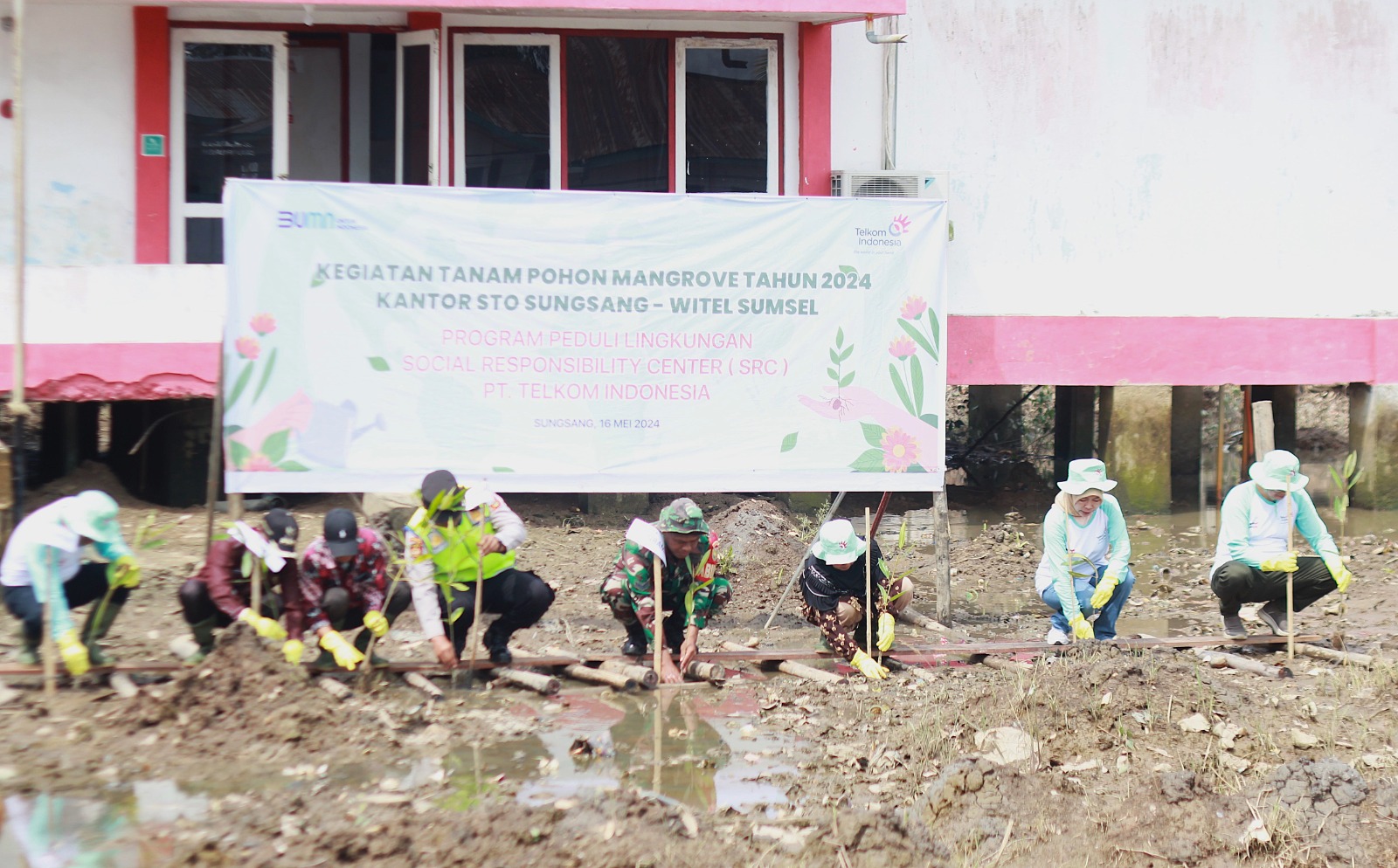 STO Sungsang Kabupaten Banyuasin, yang merupakan bagian daerah operasional Wilayah Telkom Sumatera Selatan, turut terdampak bencana banjir yang melanda pada awal tahun 2024. Infrastruktur dan perangkat operasional mengalami kerusakan serta dikhawatirkan dapat mengganggu stabilitas lingkungan jika bencana banjir kembali terjadi. Telkom pun menginisiasi penanaman bibit mangrove di beberapa titik sekitar wilayah STO Sungsang untuk mencegah resiko terjadinya bencana alam akibat abrasi pantai.