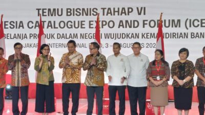 MEDAN: Ketua Umum Kadin Sumatera Utara Firsal Ferial Mutyara bersama dengan Dewan Pengurus Kadin Sumatera Utara hadir dalam acara Indonesia Catalogue Expo and Forum (ICEF) 2023 yang diselenggarakan oleh Kadin Indonesia bersama Kementerian Keuangan RI, Kementerian Hukum dan Hak Asasi Manusia RI dan Lembaga Kebijakan Pengadaan Barang/Jasa Pemerintah (LKPP).