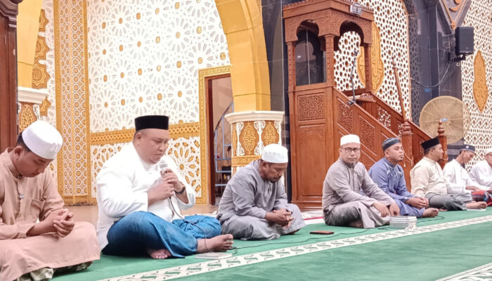 Kepala Kantor Kementerian Agama Kota Sibolga, Muhammad Rosyadi Lubis, S.HI, bersama keluarga korban, pengurus Masjid Agung, para tokoh agama, dan Kasat Intelkam Polres Kota Sibolga dan masyarakat, melaksanakan doa di Masjid Agung Kota Sibolga, Kamis malam (6/11/2025).