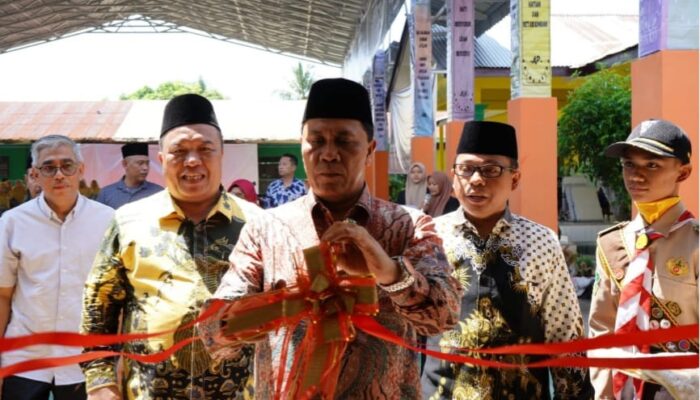 Kakanwil Kemenag Sumut H. Ahmad Qosbi, S.Ag, MM, didampingi Kepala MAN Sergai Dr. H. Burhanuddin Harahap, S.Ag, MM, menggunting pita meresmikan Gedung Hall dan Mini Hall Tahfidzul Qur’an.
