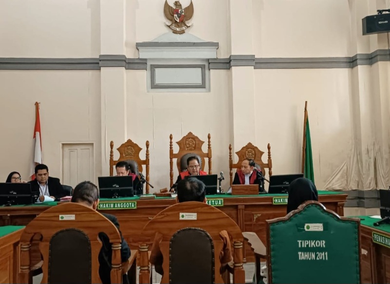 Kata hakim, perbuatan terdakwa terbukti secara sah dan bersalah melanggar Pasal 2 ayat 1 Jo. Pasal 18 Undang-undang No. 31 Tahun 1999 sebagaimana telah diubah menjadi UU No. 20 Tahun 2001 tentang Pemberantasan Tipikor Jo. Pasal 55 ayat 1 ke-1 KUHP.