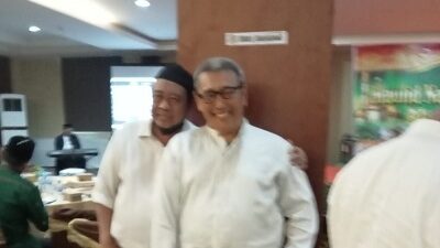 Dua alumni SMA 6 Edy Sumarno (kiri) dan Tatang Irasman Adiputra (kanan) ikut menghadiri acara reuni lintas alumni. Waspada/Ist