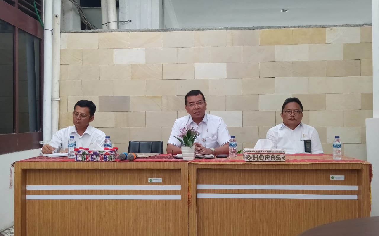 Ketua PN Medan Victor Togi Rumahorbo (tengah) saat memberikan keterangan terkait mobil Jeep Rubicon yang dikendarai seorang hakim, Senin (27/2).