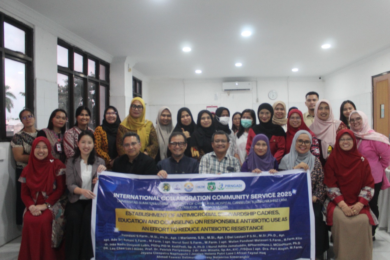 MEDAN (Waspada.id): Fakultas Farmasi Universitas Sumatera Utara (USU) bekerja sama dengan University of Cyberjaya (UoC) Malaysia, Hospital Canselor Tuanku Muhriz UKM (HCTM) Malaysia, dan RSUD Dr. Pirngadi Medan melaksanakan program pengabdian kepada masyarakat untuk mengatasi masalah resistensi antibiotik (Antimicrobial Resistance/AMR) pada 25 September 2025 kemarin.