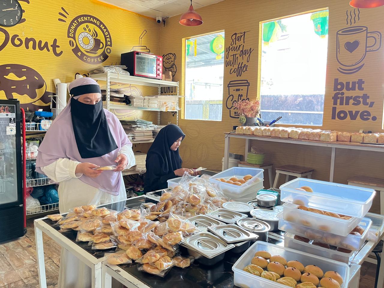 “Kami pakai perbandingan 1:1. 1 kilogram kentang, dicampur 1 kilogram tepung. Jadi teksturnya lembut dan rasanya berbeda dari yang lain. Konsumen bilang donat kami beda, bukan sekadar tren,” ungkap Fauziah bangga.