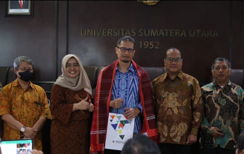 WR I USU, Dr. Edy Ikhsan, SH. MA, Direktur Akademik Pendidikan Tinggi Vokasi, Dr. Beny Bandanadjaja, ST, MT foto bersama pimpinan Fakultas Vokasi USU.