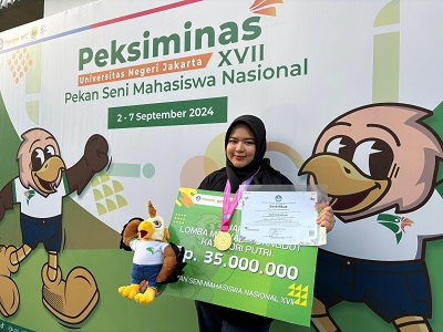 MEDAN (Waspada): Mahasiswa UMSU Syifa Ramadhani juara I cabang vocal solo dangdut di ajang puncak acara Pekan Seni Mahasiswa Nasional atau Peksiminas 2024 yang diikuti seluruh perguruan tinggi negeri dan swasta se Indonesia di Universitas Negeri Jakarta.