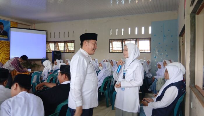 H.Muhammaf Asrul S.Ag, MPd yang pernah Kepala MAN 1 Deliserdang 2010-2013 saat sesi tanya jawab bersama siswa peserta kegiatan. Waspada.id