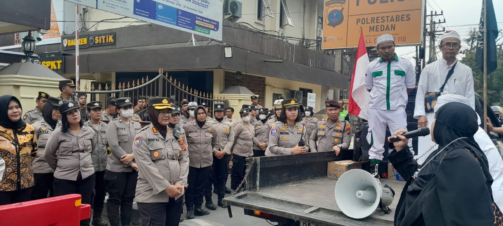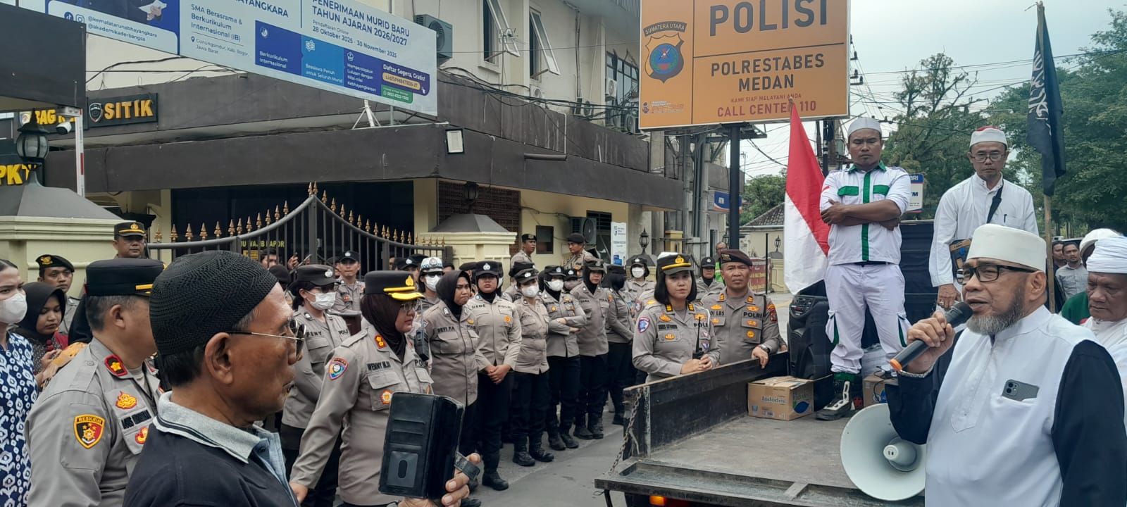 MEDAN (Waspada.id): Massa dari Aliansi Ormas Islam Pembela Masjid Sumatera Utara melaksanakan aksi damai dengan, mendatangi Mapolrestabes Medan, Jumat (30/1) sekira pukul 14:30.