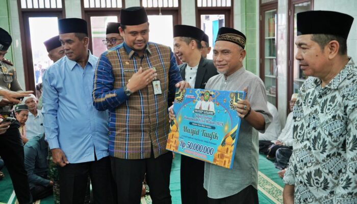 “Apabila masyarakat sudah terbantu pasti Masjid nya juga akan ikut makmur,”kata Wali Kota Medan, Bobby Nasution.
