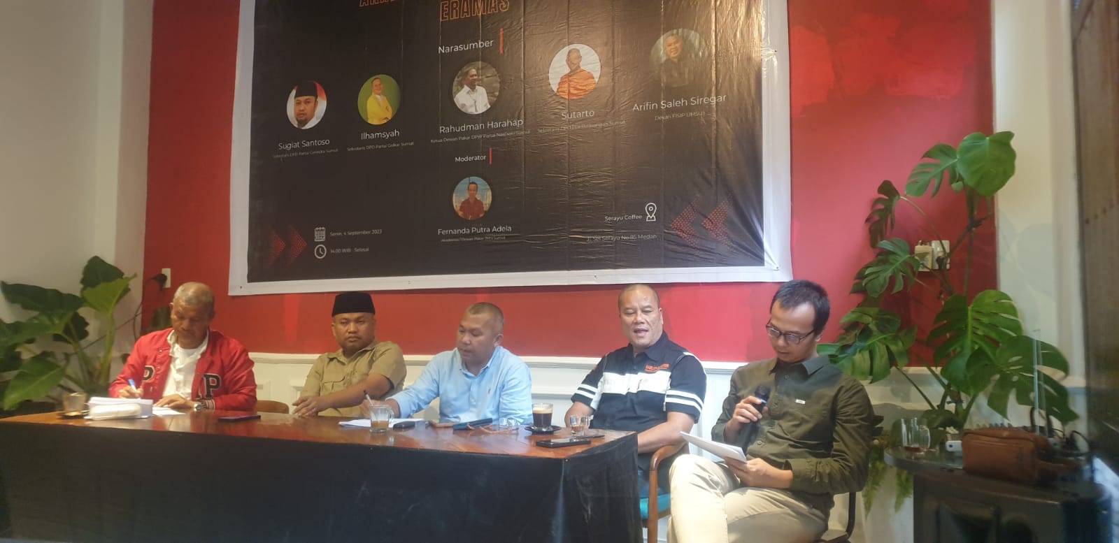 Demikian disampaikan Sekretaris DPD PDI Perjuangan Sumatera Utara, Sutarto pada Diskusi Publik ‘Refleksi Akhir Masa Kepemimpinan ERAMAS’ di Serayu Coffe, Medan, Senin (4/9/2023).