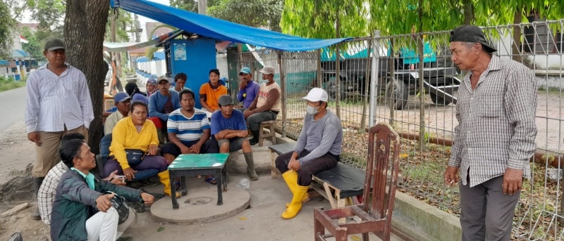Para pekerja harian Dinas Kebersihan berkumpul di depan TPA Perumnas Mandala sebelum mendatangi Kasi Kebersihan Kantor Camat Percut Seituan, Selasa (28/2).