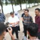 Ketua panitia pembangunan masjid, H Sahrial Saragih, didampingi Ketua BKM Masjid Salman Abdul Wahid Siregar, dan H Zaidan Indra Jaya menuangkan coran semen ke pondasi bangunan masjid.