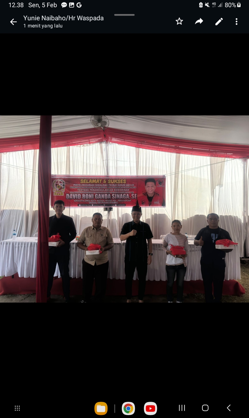 “Penanggulangan kemiskinan harus melibatkan semua pemangku kepentingan baik dari jajaran pemerintah, dunia usaha, perguruan tinggi, masyarakat dan lembaga kemasyarakatan serta lembaga swadaya masyarakat. Pemerintah harus hadir dengan memberi hak-hak rakyat miskin,” ujar David Roni Sinaga saat menggelar kegiatan sosialisasi Perda nomor 5 tentang Penanggulangan Kemiskinan di Kel. Menteng Kec Medan Denai, Sabtu (3/2).