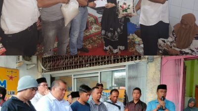 “Kebetulan hari ini salah seorang mitra kerja kita almarhum Yudi Irsandi, SH MH meninggal dunia kita melayat dan kasih bantuan,” katanya.