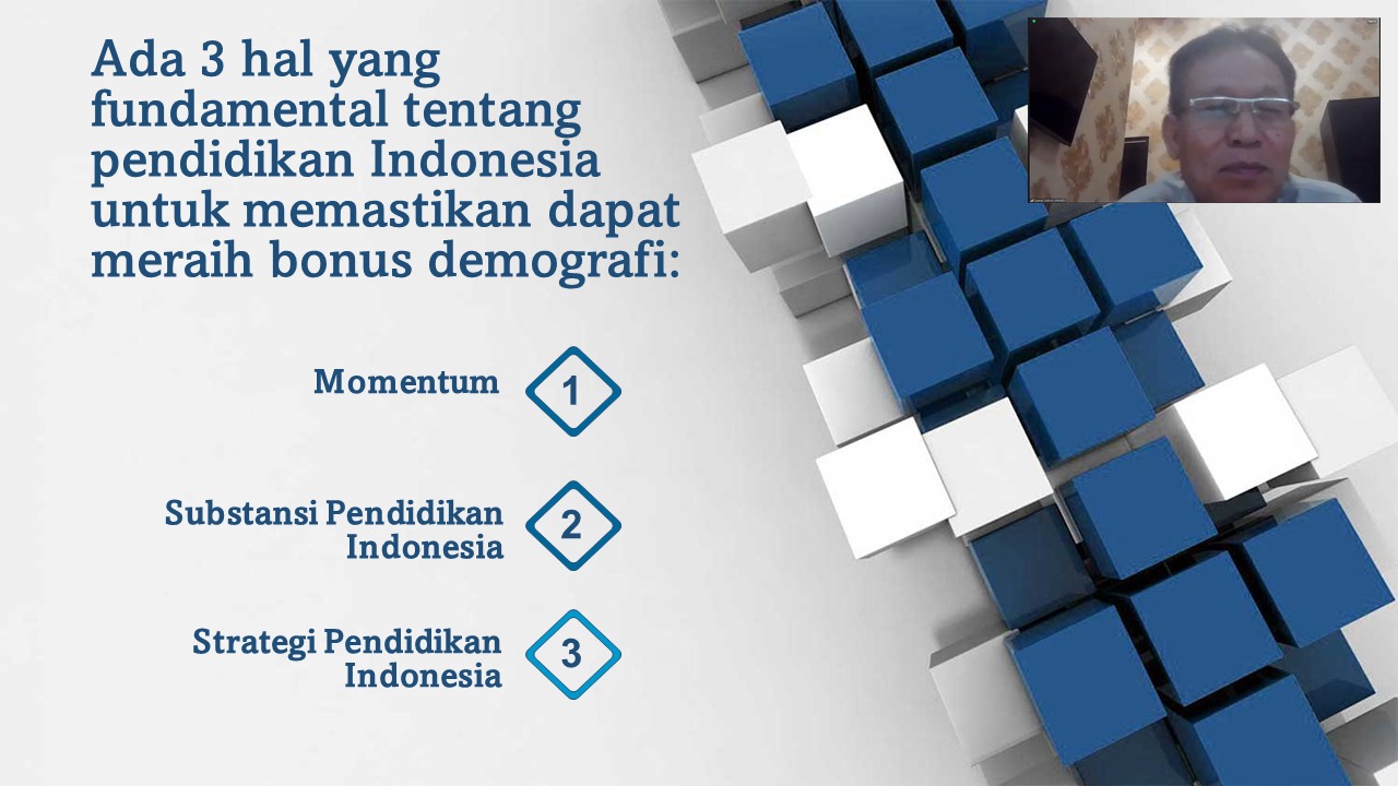 Pada pemaparannya Ketua Senat Universitas Negeri Medan, Prof. Dr. Syawal Gultom, M.Pd. menyampaikan ada 3 hal fundamental tetang pendidikan untuk memastikan meraih bonus demografi.