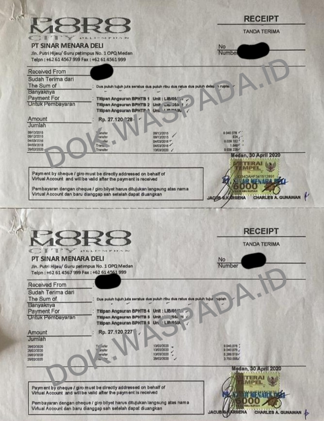 Paulus mengaku telah melunasi unit apartemen melalui 28 kali cicilan, namun hingga kini AJB maupun sertifikat hak milik tak kunjung diserahkan.