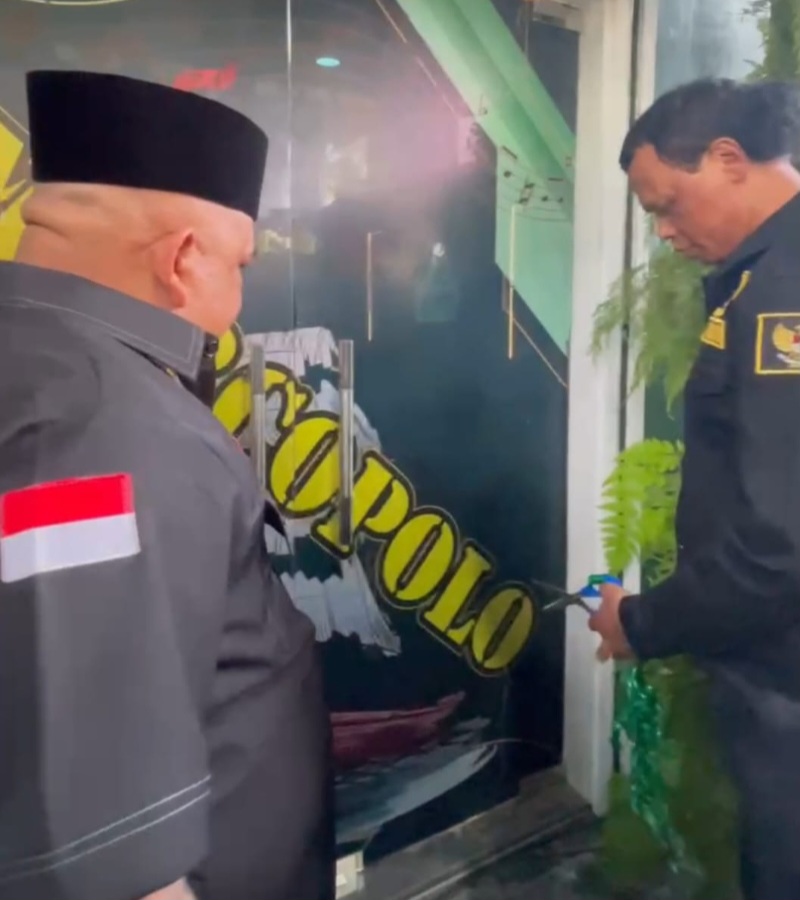 Disaksikan Ketua DPD GRIB Jaya Sumut Samsul Tarigan, Ketum DPP GRIB Jaya Hercules Rosario Marshall menggunting pita usai meresmikan Mabes GRIB Jaya Sumut dan Gedung Marcopolo Entertainment di Dusun Tanjung Pamah,Desa Namorube Julu, Kecamatan Kutalimbaru, Senin (1/7).