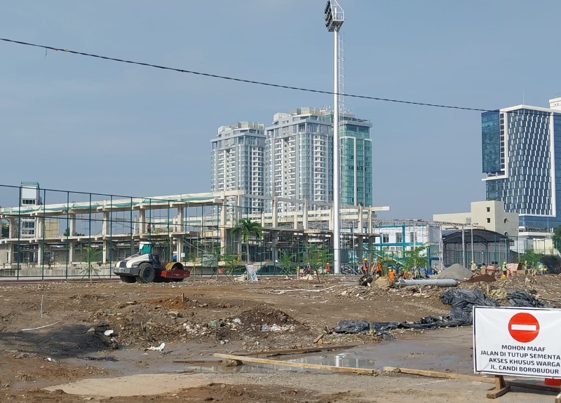 Tak hanya itu, bebatuan bekas bangunan lama juga masih berserakan. Meski memang terlihat para pekerja masih sibuk untuk menyelesaikan proyek revitalisasi tersebut.