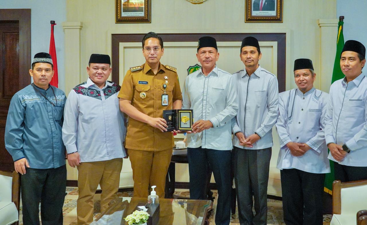 Wali Kota Medan Rico Waas foto bersama Ketua IPQAH Kota Medan H Syaifuddin Hazmi Lubis bersama pengurus lainnya.