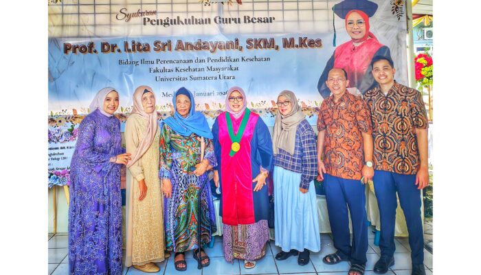 “Menyandang nama guru besar menjadi tangung jawab besar untuk menguatkan dan meningkatkan kesehatan masyarakat terutama masyarakat Sumut,” ungkap Prof. Lita yang merupakan istri dari guru besar USU Prof. Dr. dr. Juliandi Harahap, MA, FISPH, FISCM., SP.KKLP