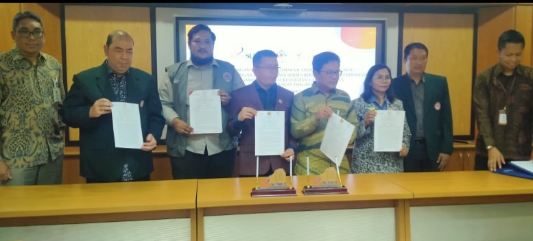 MEDAN (Waspada): Menyusul Ikatan Dokter Indonesia (IDI) Cabang Medan, tiga organisasi profesi (OP) kesehatan melakukan penandatangan Memorandum of Understanding (MoU) dengan Bank Sumut dan Koperasi Jasa Sukses Bersama Dokter Indonesia, Rabu (11/10).