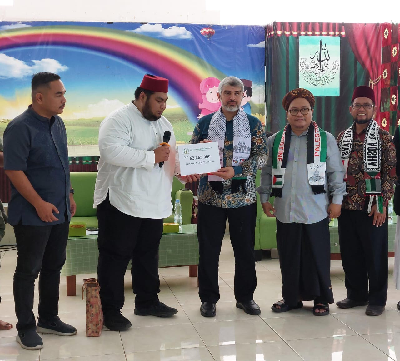 Penceramah dari Palestina Syekh Ahed Abdul Atho yang langsung menerima donasi itu mengatakan sangat berterimakasih dan juga menyampaikan langsung pesan anak palestina atas rindu dan kecintaan mereka terhadap anak-anak Indonesia khususnya siswa-siswi Khairul Imam.