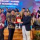 KEPALA SMA Islam Al Ulum Terpadu Medan, Bambang Hardian Damanik, SPd menyerahkan cinderamata kepada Pihak PT Inalum.