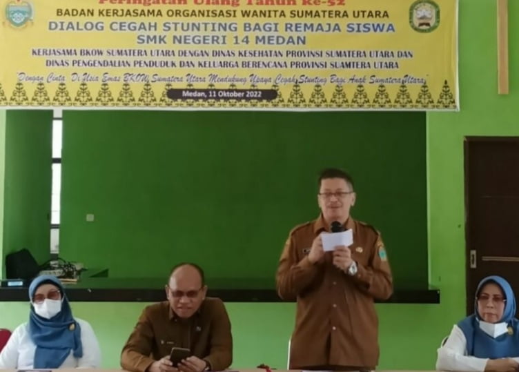 Acara itu dihadiri oleh Ketua BKOWSU, Hj.Fahrizar Iskandar Hasibuan, Plt Kepala SMKN 14, Suprianto. Kabid Pengendalian Penduduk Provinsi Sumatera Utara, Laura Ance Sinaga, S.K.M., M.HSM., M.PH para siswa sebagai peserta kegiatan dan guru.