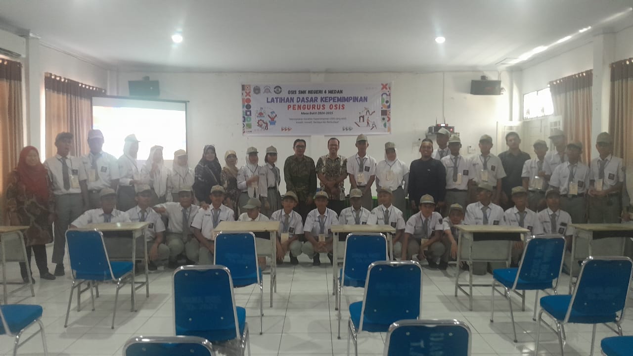 MEDAN (Waspada): Sekolah Menengah Kejuruan Negeri (SMKN) 4 menggelar kegiatan Latihan Dasar Kepemimpinan (LDK) Organisasi Siswa Intra Sekolah (OSIS) yang digelar di aula sekolah itu Jl Sei Kera No. 132 Medan, Pandau Hilir, Kec. Medan Perjuangan, Kota Medan dan Scout Village Sibolangit Jl. Pramuka, Martelu, Kec. Sibolangit, mulai 15-17 Nopember 2024.