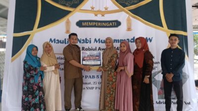 MEDAN, (Waspada); SMP PAB 5 Patumbak yang berada di Jalan Lantasan Baru, Kec. Patumbak, Kab. Deli Serdang ini menaruh kepedulian terhadap korban di Palestina. Lewat Dompet Dhuafa Waspada, SMP PAB 5 Patumbak menyalurkan donasi sebesar Rp3.775.000, Kamis (2/11).