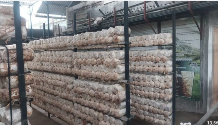 Kegiatan pelatihan ini mencakup materi seperti pembuatan kumbung, media tanam (baglog), perawatan, panen, hingga diversifikasi produk olahan jamur yang dideskripsikan oleh Owner ‘Nagih Jamur’, Bapak Hartopo, S.P.