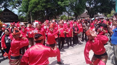 Saat sampai di depan pintu gerbang Kantor KPU Sumut, rombongan disambut dengan tarian pencak silat yang dibawakan pesilat dengan pakaian serba merah. Sementara di hadapannya tampak Ketua DPD PDI Perjuangan Sumut Rapidin Simbolon bersiap untuk masuk ke dalam kantor KPU Sumut.
