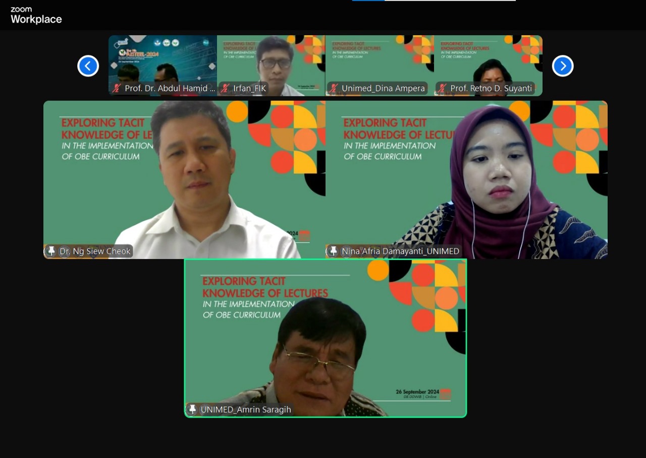 kuliah umum Unimed bersama Universiti Malaya secara virtual melalui aplikasi Zoom, tentang Implementasi Kurikulum OBE di perguruan tinggi Indonesia dan Malaysia.