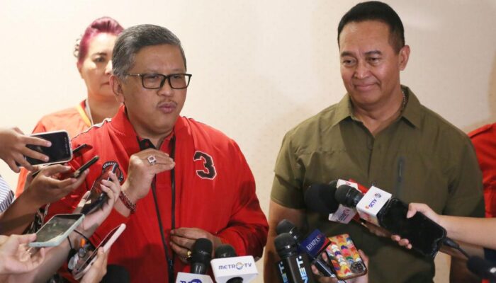 Di sela-sela memberikan materi, Andika bersama Sekjen DPP PDIP Hasto Kristiyanto pun menyampaikan keterangan kepada wartawan.