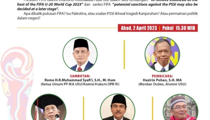 JAKARTA (Waspada): Pembatalan Indonesia sebagai tuan rumah piala dunia U20 menjadi sorotan mantan duta besar, diplomat dan pakar alumni Universitas Sumateta Utara (USU).