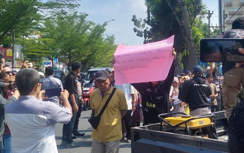 Mereka menuntut pencopotan Ketua Pengadilan Negeri (PN) Bangkinang, Soni Nugraha, yang juga Ketua Majelis Hakim dalam perkara gugatan wanprestasi PTPN IV terhadap Koperasi Petani Sawit Makmur (Koppsa M).