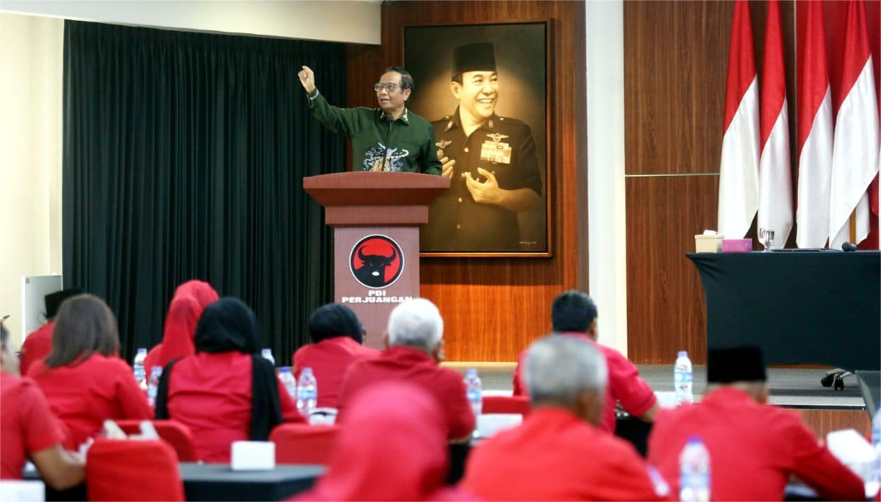 JAKARTA (Waspada): Guru Besar Hukum Tata Negara Prof Mahfud MD mengajak seluruh calon anggota legislatif terpilih PDI Perjuangan (PDIP) di tingkat pusat, provinisi, kabupaten dan kota yang terpilih pada Pemiihan Umum (Pemilu) 2024 untuk meneruskan amanah perjuangan Presiden Pertama RI Ir Soekarno atau Bung Karno dalam mewujudkan Indonesia Emas.
