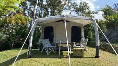 Dometic juga menghadirkan Santorini FTK 4X8 TC, tenda tiup yang ideal untuk keluarga atau kelompok dengan bahan katun yang dirancang dengan teknologi tinggi dan dilengkapi dengan kanopi yang besar untuk melindungi penghuninya. Panel jala anti serangga yang memiliki ritsleting di semua sisi tenda memberikan kontrol aliran udara yang maksimal, mengurangi kondensasi dan mengatur suhu bagian dalam.