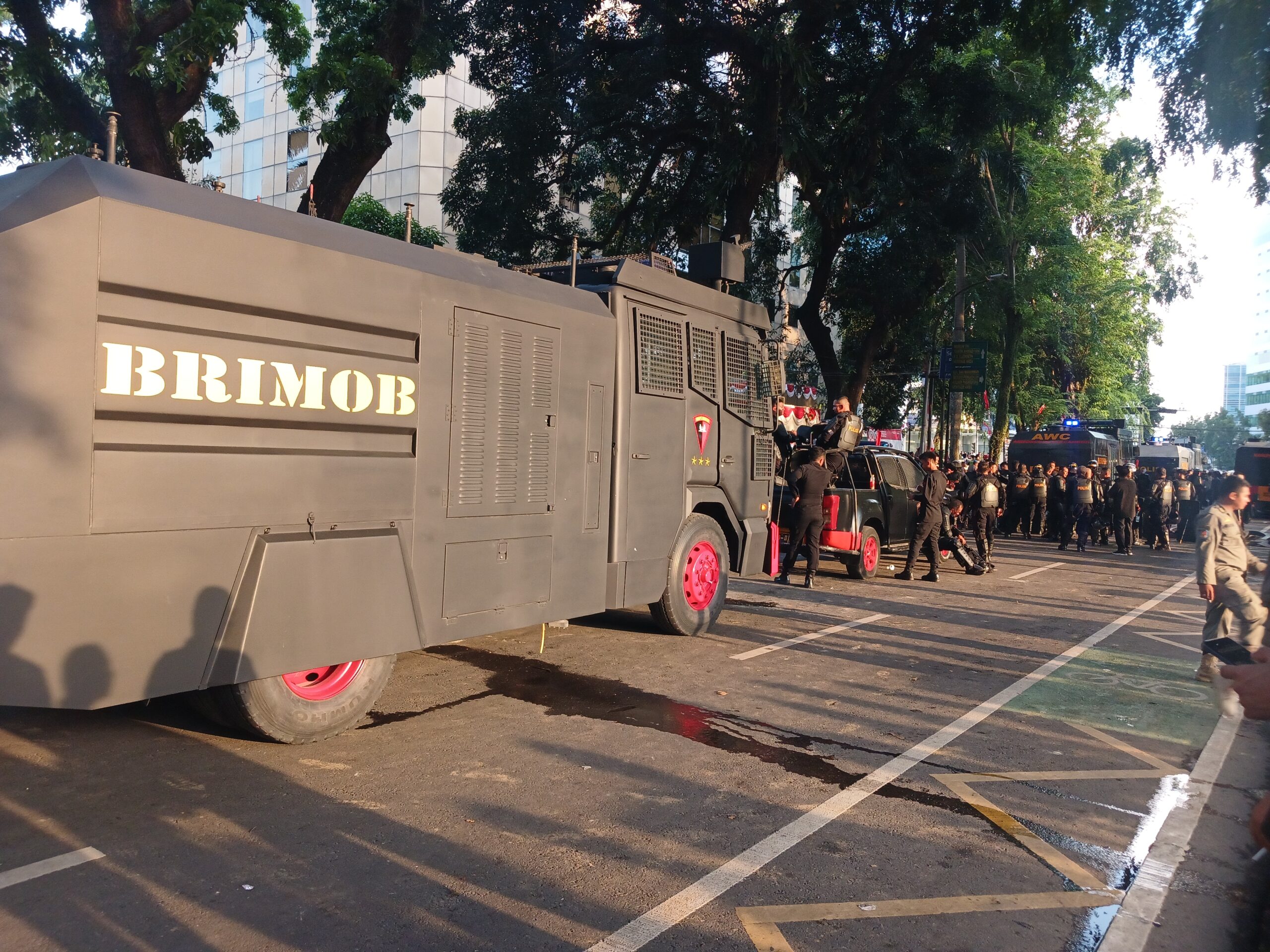 Ketegangan meningkat, aparat memperluas barikade. Wilayah ini termasuk dalam zona merah demo Jakarta.
